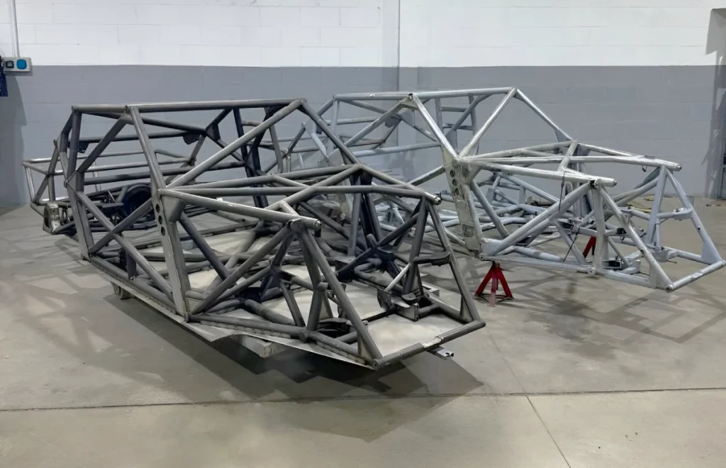 Las estructuras tubulares para los BMW juntas en el taller en octubre de 2025.